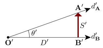 Similarly, S′ is the perceived linear extent by which the subjective point A′ appears directly above point B′. The observer could simply say how many inches or meters that vertical distance looks. For a viewed object, S′ thus is its perceived linear size in meters, (or apparent linear size).