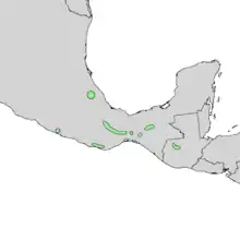 The tree is native to southern Mexico and Guatemala, where it is found from 600–2,200 metres (2,000–7,200 ft).[1] It is found in Central American pine-oak forests habitats, including in the Sierra Madre de Chiapas.