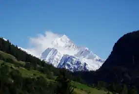 ![]() View of Piz Linard from the Engadine valley (south) | |
