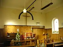In later years, some additions were made to the structure, to provide for toilets and a kitchen. The different brickwork on the photo of the rear of the building shows this. The outside of the main chapel is now painted white, and is of the same brick as the "Sunday School" at the rear. Modern brick gives away the later extensions. The porch also appears to be a later addition, not matching the simplicity of the original architecture, and having two layers of flashing over the join to the building.