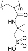 PolyAMPS, or poly(2-acrylamido-2-methyl-1-propanesulfonic acid) (trademark of the Lubrizol Corporation), is an organic polymer. It is water-soluble, forms gels when cross linked, and acts as a strong anionic polyelectrolyte. It can be used for ion exchange resins. It can form hydrogels.