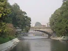 The Ponte Mosca is a historic bridge in Turin, region of Piedmont, Italy. It was the first stone bridge built in the city by the Sabauda dynasty. The bridge was erected over the Dora Riparia; the corso Giulio Cesare enters the Aurora quarter, near Porta Palazzo, over this bridge.