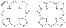 Two resonance structures of porphine.