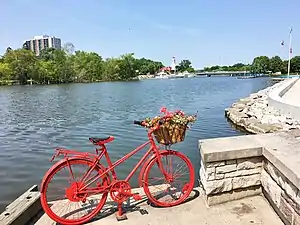 The Port Credit Library, located on 20 Lakeshore Road East, sits beside the Credit River and a large public park. Along with the Lorne Park and Lakeview branches, the Port Credit Library was redeveloped as part of the Ontario Government's Infrastructure Stimulus Fund beginning in 2009.[12]