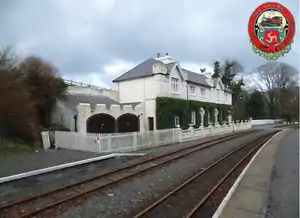 To the eastern end of the station the railway passes over the main road by means of a large stone bridge; at the southerly end the line passes into Crogga Woods from where can be seen the large house and miniature railway.