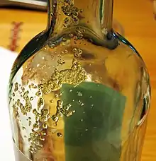 These crystals also precipitate out of fresh grape juice that has been chilled or allowed to stand for some time.[1] To prevent crystals forming in homemade grape jam or jelly, the prerequisite fresh grape juice should be chilled overnight to promote crystallization. The potassium bitartrate crystals are removed by filtering through two layers of cheesecloth. The filtered juice may then be made into jam or jelly.[2] In some cases they adhere to the side of the chilled container, making filtering unnecessary.