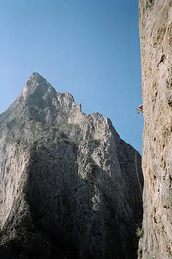 El Potrero Chico is an internationally renowned rock climbing area in the Mexican state of Nuevo León, 3 kilometres (1.9 mi) outside the town of Hidalgo, within Sierra del Fraile protected area. El Potrero Chico is a unique geological formation of limestone cliffs and spires, some as high as 2,000 feet (610 m).