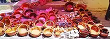 Metepec is one of a number of ceramic centers in Mexico, along with Oaxaca, Puebla, various parts of Michoacán and the Guadalajara area although it produces a significantly smaller quantity.[1] While other handcrafts are made in the municipality, pottery is the most important.[2] The creation of pottery in Metepec is traditional, family-oriented and of a distinctive local design and manufacture. It maintains many of its traditional techniques from the colonial period, passed down in pottery making families usually done by men but women are also involved. In many areas such as the neighborhood of Cuaxustenco, family homes double as workshops able to handle all phases of creation including firing. The pottery can be distinguished by both the clays it uses as well as its shapes and decorative styles, which unique to the area although not absolutely purist.[3] The clay used in Metepec pottery is extracted from neighboring areas such as Octotitlán, San Felipe Tlamimilolpan and Tlacotepec. This originally was down with cart and donkey but today is done with motorized vehicles.[4] There are three main clays, red, a sandy yellow and black.[4][5] The most traditional shaping method is coiling over a tortilla-like base.[4]