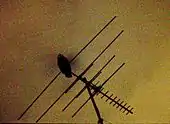 Not infrequently taken are the black (Pteropus alecto) and grey-headed flying foxes (Pteropus poliocephalus), the largest of Australian bats, although smaller bats have also been killed.[14] Introduced mammals, namely rats (Rattus spp.), European hare (Lepus europaeus) and European rabbits (Oryctolagus cuniculus), especially the abundant young of the latter after their litters disperse, are also hunted. Opportunistic as are most predators and owls, given the chance the powerful owl will also prey on nocturnal birds such as the tawny frogmouth (Podargus strigoides). Roosting diurnal birds are also taken such as various cockatoos and parrots (around a dozen species thus far recorded), Australian brushturkey (Alectura lathami), dusky moorhen (Gallinula tenebrosa), white-faced herons (Egretta novaehollandiae), crested pigeon (Ocyphaps lophotes), wonga pigeon (Leucosarcia melanoleuca), kookaburras (Dacelo spp.), superb lyrebird (Menura novaehollandiae), olive-backed oriole (Oriolus sagittatus), Australian magpie (Gymnorhina tibicen), currawongs (Strepera spp.), honeyeaters (Meliphagidae) and crows and ravens (Corvus spp.).[3][7][16][18][19] In one study, the most frequently killed bird prey species were pied currawong (Strepera graculina) and crimson rosella (Platycercus elegans) and avian prey taken as a whole was estimated to average 350 g (12 oz).[14] Rarely, other birds of prey have been killed and eaten, including large accipiters such as brown goshawks (Accipiter fasciatus) and grey goshawks (Accipiter novaehollandiae).[20] Insects may supplement the diet and are typically taken on the wing. Rarely, lizards and snakes are also captured.[3][14]