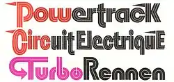 Powertrack (UK), Speedtrack (US), Turbosprint and Lanechanger are brand names for Matchbox's toy slot cars sets. Introduced in the late 1970s, Powertrack and Speedtrack differed from other slot car sets because the cars could be seen in the dark as the cars had headlights. Matchbox's H0/00 (approx. 1/64) cars were smaller than Scalextric 1/32-scale cars.