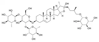 Protodioscin is a steroidal saponin compound found in a number of plant species, most notably in the Tribulus, Trigonella and Dioscorea families.[1][2][3] It is best known as the putative active component of the herbal aphrodisiac plant Tribulus terrestris.[4]