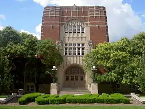 The Purdue Memorial Union (PMU) is a student union building located on the Purdue University campus in West Lafayette, Indiana, USA. It opened in 1924 as a memorial to the Purdue students who had fought in World War I. The building includes several restaurants, lounges, and student organization offices, as well as a bowling alley and a hotel.