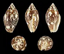 Pyrene flava, common name : the yellow dove shell, is a species of sea snail, a marine gastropod mollusk in the family Columbellidae, the dove snails.[1]