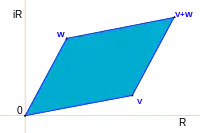 Addition and multiplication are common operations in the theory of complex numbers and are given in the figures. The sum is found as follows. Let the start of the second arrow be at the end of the first. The sum is then a third arrow that goes directly from the beginning of the first to the end of the second. The product of two arrows is an arrow whose length is the product of the two lengths. The direction of the product is found by adding the angles that each of the two have been turned through relative to a reference direction: that gives the angle that the product is turned relative to the reference direction.