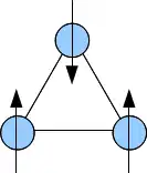 The quantum spin liquid state was first proposed by physicist Phil Anderson in 1973 as the ground state for a system of spins on a triangular lattice that interact antiferromagnetically with their nearest neighbors; i.e. neighboring spins seek to be aligned in opposite directions.[2] Quantum spin liquids generated further interest when in 1987 Anderson proposed a theory that described high temperature superconductivity in terms of a disordered spin-liquid state.[3][4]