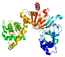 Human Epac2 is coded by RAPGEF4 located at chromosome 2q31-q32, and three isoforms (Epac2A, Epac2B, and Epac2C) are generated by alternate promoter usage and differential splicing.[8][12][13] Epac2A (called Epac2 originally) is a multi-domain protein with 1,011 amino acids, and is expressed mainly in brain and neuroendocrine and endocrine tissues such as pancreatic islets and neuroendocrine cells.[8] Epac2A is composed of two regions, an amino-terminal regulatory region and a carboxy-terminal catalytic region. The regulatory region contains two cyclic nucleotide-binding domains (cNBD-A and cNBD-B) and a DEP (Dishevelled, Egl-10, and Pleckstrin) domain. The catalytic region, which is responsible for the activation of Rap, consists of a CDC25 homology domain (CDC25-HD), a Ras exchange motif (REM) domain, and a Ras association (RA) domain.[14] Epac2B is devoid of the first cNBD-A domain and Epac2C is devoid of a cNBD-A and a DEP domain. Epac2B and Epac2C are expressed specifically in adrenal gland[12] and liver,[13] respectively.