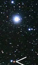 It has an apparent magnitude that varies from about 5 to 7.4.[2] At its brightest it is dimly visible to the naked eye, and at its dimmest can be located with binoculars. In the sky it is about 4 degrees south of Rigel and is located next to Iota Leporis.