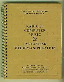 Radical Computer Music references the habit in Scandinavia of addressing notated music as "serious music".[2] As such it not only presents a different, more wide-ranging, approach to computer music, based on the acceptance of the medium as intelligent (AI or ALI, the latter term created by Goodiepal to describe alternative intelligence) but also includes media art as a field at risk of trivialisation and lack of utopian aspirations. According to Goodiepal, the scarcity of a utopian spark in contemporary computer music and media art is exacerbated by the low level of content in most computer-based communication, as a preference for sheer documentation appears to have come to motivate most media activities.[3] Generally, a call for easy access and convenience permeates the relation between humans and computers, rather than the aspiration for cultural evolution through technological refinement.[4] In the process of this deflation, human language is reduced to machine-like commands when humans increasingly address machines as machines without making use of an otherwise highly refined associative and context-based sense of language. Goodiepal advocates that these communicative skills can be strengthened in humans through the creation of musical scores in languages at the same time challenging the mindsets of computers, artificial, and alternative intelligences. Through this mutually beneficial communication exercise the man-machine relationship can potentially move to a higher level.[5]