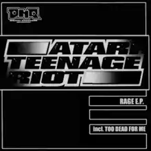 Rage E.P. is a release by Atari Teenage Riot. Although the title of the release is "Rage E.P.", it only contains versions of the song "Rage", so it is similar to a single. The CD versions are enhanced CDs which contain the single file of the music video "Too Dead For Me" in MPEG format. A 12" vinyl edition also exists.