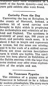 Ralaghan Man is an anthropomorphic, carved wooden figure found in the bog of Ralaghan, County Cavan, Ireland, which dates back to the late bronze age. As of 2016, it was held in the collections of the National Museum of Ireland.[1]