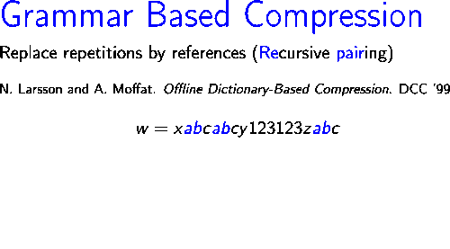 Re-Pair was first introduced by NJ. Larsson and A. Moffat[1] in 1999.