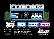 Reader Rabbit (fully titled "Reader Rabbit and the Fabulous Word Factory" or alternatively known as "Reader Rabbit Builds Early Learning & Thinking"[2]) is a 1983 video game and the first of the long-running Reader Rabbit edutainment series. It was made by The Learning Company for Apple II and later for other computers. It also made use of the KoalaPad graphics tablet.[3] The Connelley Group helped with the Atari 8-Bit conversion in 1984.[1] A Talking version was developed for the Apple IIGS in 1989. An enhanced version was released for DOS on 1991. A Deluxe version was released in 1994 for Macintosh and Windows 3.x. In 1997, the game was remade for Windows and Macintosh under the title "Reader Rabbit's Reading 1".