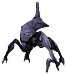 In the original trilogy, the Reapers' ground forces primarily consist of synthetic-organic creatures who were converted from harvested organic bodies. In the first two Mass Effect games, these creatures are primarily derived from humans impaled on spike-like Reaper structures called "dragon's teeth", and are called "husks". Mass Effect 2 introduced several variants of the husk unit: these include the scion, made up of several husks strung together in a grotesque manner, and the praetorian, a large monstrosity designed with numerous Husk heads visible inside its chest cavity to add a horrific and menacing feel.[9] Reaper ground forces in Mass Effect 3 also include horrific, twisted versions of the series' other extraterrestrial species, including asari, batarians, krogan, turians, and the rachni, a sentient race of telepathic insectoid beings long thought to be extinct.[11] These enemy types reflect the major fronts during the Reaper invasion in series lore, and help inform the team's approach of designing enemies that are under the command of the Reapers but are not themselves Reapers; the goal is to maintain the series' signature squad-based combat as opposed to directly pitting Shepard in an implausible fight against a colossal Reaper capital ship which is typically at least two-kilometres long.[11] There are however certain sequences in Mass Effect 3 which involve smaller versions of Reapers landing on planets to do battle with Shepard.[12] This class of Reapers, known as Destroyers, are 160 metres high and are given Sovereign's unused design of a leaf insect nymph silhouette.[13]