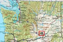 The Red Mountain AVA is an American Viticultural Area that includes the land surrounding Red Mountain in Benton County, Washington. It is part of the Yakima Valley AVA, which in turn is part of the larger Columbia Valley AVA. Located between Benton City and the City of West Richland, the Red Mountain AVA is the smallest in the state at only 4,040 acres (1,630 ha) in area.[4] The area has more than 2,000 acres (810 ha) under cultivation of primarily red varietals including Cabernet Sauvignon, Merlot, Sangiovese, Cabernet Franc and Syrah.[3][5] The reputation of the wines produced in this area has brought Red Mountain AVA worldwide acclaim.[6] The vineyards in this appellation have produced grapes for some of the most sought after wines in Washington State.[2]