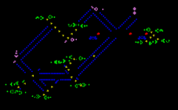 Oscillators of varying periods that double as glider reflectors highlighted in pink. Click to view animation.