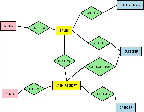 At the heart of each REA model there is usually a pair of events, linked by an exchange relationship, typically referred to as the "duality" relation. One of these events usually represents a resource being given away or lost, while the other represents a resource being received or gained. For example, in the sales process, one event would be "sales"—where goods are given up—and the other would be "cash receipt", where cash is received. These two events are linked; a cash receipt occurs in exchange for a sale, and vice versa. The duality relationship can be more complex, e.g., in the manufacturing process, it would often involve more than two events (see Dunn et al. [2004] for examples).