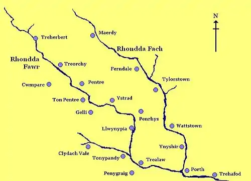 ![]() Map showing location of the Rhondda Valley within Wales | |