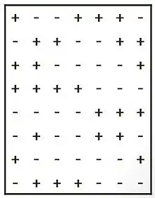 Hadamard matrices are square matrices consisting of only + and −. If a Hadamard matrix is normalized and fractionated, a design pattern is obtained. However, not all designs are equal, which means that some designs are better than others, and specific design criteria are used to determine which design is best. After obtaining a design pattern, experimenters generally know to which setting each factor should be set. Each row, in the pattern, indicates a run, and each column indicates a factor. For the partial design pattern shown left, the experimenter has identified seven factors that may have an effect on the response and hopes to gain insight as to which factors have an effect in eight runs. In the first run, factors 1, 4, 5, and 6 are set to high levels while factors 2, 3, and 7 are set to low levels. Low levels and high levels are settings typically defined by the subject matter expert. These values are extremes but not so extreme that the response is pushed into non-smooth regions. After each run, results are obtained; and by fluctuating multiple factors in single runs instead of using the OFAT method, interactions between variables may be estimated as well as the individual factor effects. If two factors interact, then the effect one factor has on the response is different depending on the settings of another factor.