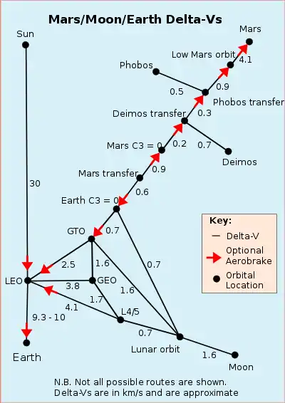 - "table of cislunar/mars delta-vs". Archived from the original on 2007-07-01.