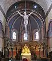 If the choir is separated from the church interior by a rood screen, the rood cross is placed on, or more rarely in front of, the screen.[6][7] Under the rood is usually the altar of the Holy Cross.