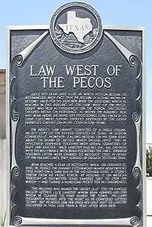 - House, Marguerite (9 September 2015). "Judge Roy Bean-Law West of the Pecos - Buffalo Bill Center of the West". Buffalo Bill Center of the West. Retrieved 18 January 2018.
