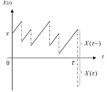 where is the discounting force of interest, is a general penalty function reflecting the economic costs to the insurer at the time of ruin, and the expectation corresponds to the probability measure . The function is called expected discounted cost of insolvency by Powers.[10]