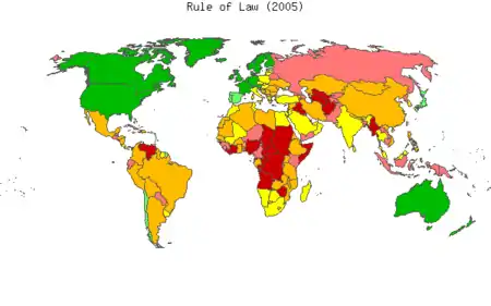 2005 map of Worldwide Governance Indicators, which attempts to measure the extent to which agents have confidence in and abide by the rules of society.