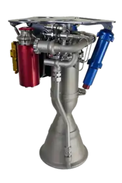 Rutherford is a liquid-propellant rocket engine designed by aerospace company Rocket Lab[8] and manufactured in Long Beach, California.[9] The engine is used on the company's own rocket, Electron. It uses LOX (liquid oxygen) and RP-1 (refined kerosene) as its propellants and is the first flight-ready engine to use the electric-pump feed cycle. The rocket uses a similar engine arrangement to the Falcon 9; a two-stage rocket using a cluster of nine identical engines on the first stage, and one vacuum-optimized version with a longer nozzle on the second stage. This arrangement is also known as an octaweb.[10][6][7] The sea-level version produces 24 kN (5,400 lbf) of thrust and has a specific impulse of 311 s (3.05 km/s), while the vacuum optimized-version produces 24 kN (5,400 lbf) of thrust and has a specific impulse of 343 s (3.36 km/s).[2]