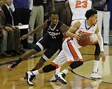 Upon arriving at Connecticut, his eligibility was challenged.[5] After missing the first three games, the National Collegiate Athletic Association ruled that he would have to serve an additional three-game suspension to bring his total to six games served due to "receiving improper benefits".[6] Upon further review, Boatright endured a total of nine games under suspension.[7] Nonetheless, he became a key player for the Huskies as a freshman, averaging 10.4 points, 4.0 assists and 3.3 rebounds in 30.1 minutes per game.