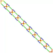Recently, this method has been extended (Generalized Rybicki Press algorithm) for inverting matrices whose entries of the form .[4] The key observation in the Generalized Rybicki Press (GPP) algorithm is that the matrix is a semi-separable matrix with rank . More precisely, if the matrix has a semi-separable rank is , the cost for solving the linear system and obtaining the determinant of the matrix scales as , thereby making it extremely attractive for large matrices. This implementation of the GPP algorithm can be found here.[5] The key idea is that the dense matrix can be converted into a sparser matrix of a larger size (see figure on the right), whose sparsity structure can be leveraged to reduce the computational complexity.