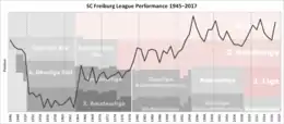 To this point, the history of the club had been characterised by only modest success. Through the 1930s, SC Freiburg played in the Bezirkliga (II), with the occasional turn in the Gauliga Baden (I), and captured a handful of local titles. After World War II, they picked up where they left off, playing in the Amateurliga Südbaden (III).