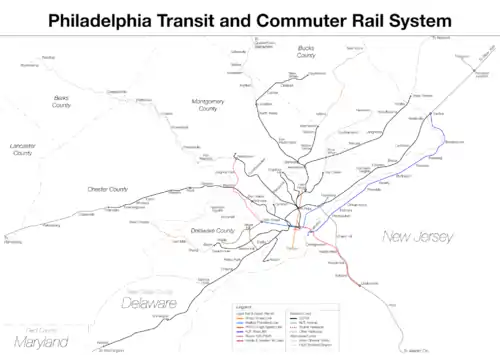 Meanwhile, SEPTA gradually began to take over the Pennsylvania Railroad and Reading Company commuter trains. SEPTA primarily sought to consolidate the formerly-competing services, leading to severe cutbacks in the mid-1980s.[10] Subsequent proposals have been made to restore service to Allentown, Bethlehem, West Chester and Newtown, with support from commuters, local officials and pro-train advocates. SEPTA's planning department focused on the Schuylkill Valley Metro, a "cross-county metro" that would re-establish service to Phoenixville, Pottstown and Reading without requiring the rider to go into Philadelphia.[11][12] However, ridership projections were dubious, and the FRA refused to fund the project.[13][14]