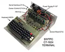 When microprocessors (CPU chips) became available, SWTPC became one of the first suppliers of microcomputers to the general public, focusing on designs using the Motorola 6800 and, later, the 6809 CPUs. Many of these products were available in kit form as well. SWTPC also designed and supplied computer terminals, chassis, processor cards, memory cards, motherboards, I/O cards, disk drive systems, and tape storage systems. From the older "TV Typewriter" design a Video terminal had evolved the CT-64 terminal system, which was an essential part of many early SWTPC systems. Later a more intelligent version of this terminal, the CT-82, was introduced, and a graphical terminal the GT-6144 Graphics Terminal. Still later a SS-50 bus plug-in board, the "Data Systems 68 6845 Video Display Board" was introduced, and a keyboard could be connected to this board. With this solution an external terminal was no longer needed.