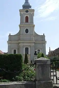 The city's importance was linked to the transportation and commerce of salt from nearby Ocna Dejului (Hungarian: Désakna, German: Salzdorf), possibly already at a very early date.[6] Due to the economic and commercial benefits it began to receive in the 13th century, Satu Mare became an important centre for craft guilds. In the 18th century, intense urbanisation began; several buildings survive from that period, including the old city hall, the inn, a barracks, the Greek Catholic church and the Reformed church. A Roman Catholic diocese was established there in 1804. In 1823, the city's systematization commission was established in order to direct its local government. In 1844, paving operations begun in 1805 were stepped up. The first industrial concerns also opened, including the steam mill, the brick factory, the Neuschloss Factory for wood products, the lumber factory, the Princz Factory and the Unio Factory. Due to its location at the intersection of commercial roads, Szatmárnémeti became and important rail hub. The Szatmárnémeti–Nagykároly (Carei) line was built in 1871, followed in 1872 by the Szatmárnémeti–Máramarossziget (Sighetu Marmaţiei) line, an 1894 link to Nagybánya (Baia Mare), 1900 to Erdőd (Ardud) and 1906 to Bikszád (Bixad).[8]