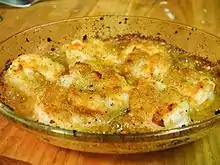 Shrimp Scampi is a food that includes various culinary preparations of certain crustaceans,[2] such as Metanephrops, as well as shrimp or prawns. Shrimp Scampi preparation styles vary regionally. The United Kingdom legally defines scampi specifically as Nephrops norvegicus.[3] Monkfish tail was formerly sometimes used and sold as scampi in the United Kingdom,[4] contravening the Fish Labelling (Amendment) England Regulation 2005 and Schedule 1 of the Food Labelling Regulations 1996.