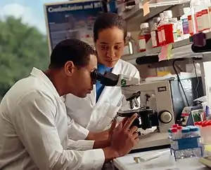 In modern times, many professional scientists are trained in an academic setting (e.g., universities and research institutes), mostly at the level of graduate schools. Upon completion, they would normally attain an academic degree, with the highest degree being a doctorate such as a Doctor of Philosophy (PhD).[6] Although graduate education for scientists varies among institutions and countries, some common training requirements include specializing in an area of interest,[26] publishing research findings in peer-reviewed scientific journals[27] and presenting them at scientific conferences,[28] giving lectures or teaching,[28] and defending a thesis (or dissertation) during an oral examination.[6] To aid them in this endeavor, graduate students often work under the guidance of a mentor, usually a senior scientist, which may continue after the completion of their doctorates whereby they work as postdoctoral researchers.[29]