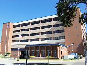 The present Scott County Courthouse was completed in 1955 and expanded along with the jail in 2007.[5][6] The old section of the Scott County Jail was listed on the National Register of Historic Places in 1983.[7] The courthouse was included as a contributing property in the Davenport Downtown Commercial Historic District in 2020.[8]