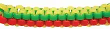 One strand is tied around one or more other strands. The more strands that are used in the middle the fatter the Chinese staircase is. This is made with different colour strings.[10]