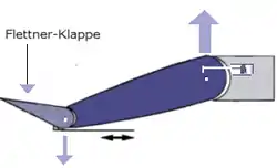 An anti-servo tab, or anti-balance tab, works in the opposite way to a servo tab. It deploys in the same direction as the control surface, making the movement of the control surface more difficult and requires more force applied to the controls by the pilot. This may seem counter-productive, but it is commonly used on aircraft where the controls are too light or the aircraft requires additional stability in that axis of movement. The anti-servo tab serves mainly to make the controls heavier in feel to the pilot[4] and also to increase stability.[5] An anti-servo tab also functions as a trim device to relieve control pressure and maintain the stabilator in the desired position.[2][6]