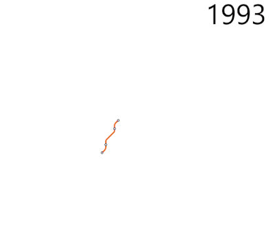 - May 28, 1993 – Southern section of Line 1 (Shanghai South Railway Station – Xujiahui) enters operation[11][12] (4.4 km or 2.7 mi).